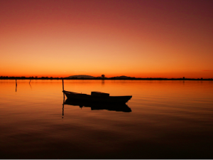 δύση του ηλίου τα νερά βάφονται κατακόκκινα.